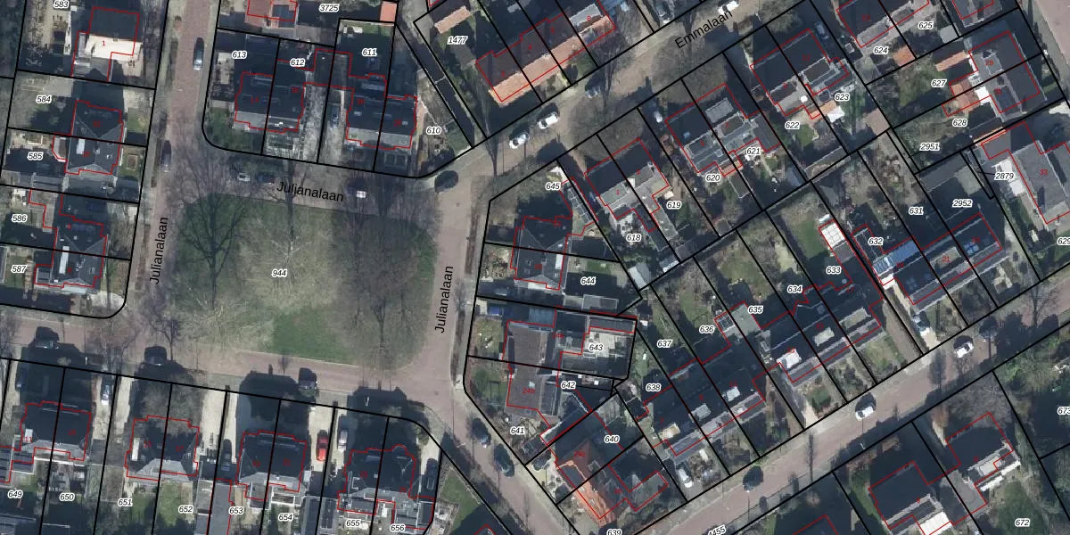 Gebruik de zoekbalk of klik op een perceel voor informatie over de adressen binnen dit perceel.