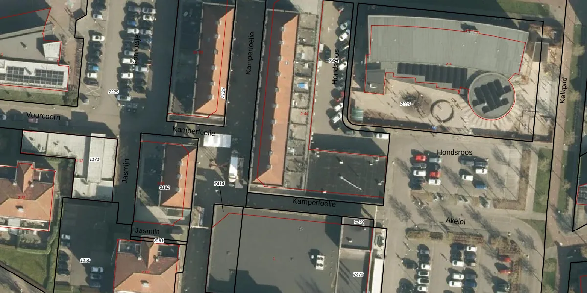 Het perceel waarop Kamperfoelie 28 staat heeft een oppervlakte van 2443 m². Dit is een zeer groot perceel. De perceeloppervlakte wordt geregistreerd door het Kadaster. Gedetailleerde informatie over de maten van dit perceel kunt u vinden in het rapport Kadastrale kaart met maatvoering van Kamperfoelie 28.