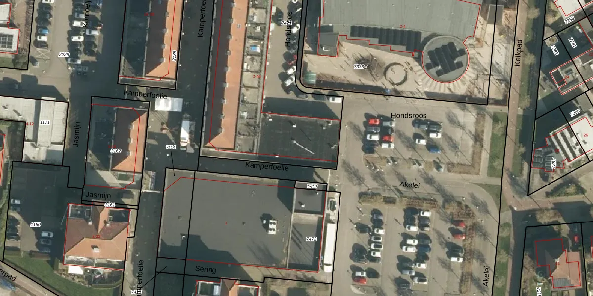Het perceel waarop Kamperfoelie 4 staat heeft een oppervlakte van 2443 m². Dit is een zeer groot perceel. De perceeloppervlakte wordt geregistreerd door het Kadaster. Gedetailleerde informatie over de maten van dit perceel kunt u vinden in het rapport Kadastrale kaart met maatvoering van Kamperfoelie 4.