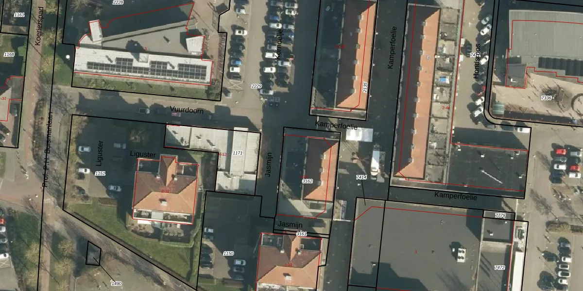 Kamperfoelie 9 is gelegen op kadastraal perceel TIE00K3162. Deze kadastrale aanduiding is uniek en wordt gebruikt door het Kadaster om eigendomsrechten en andere zakelijke rechten vast te leggen. Het perceel maakt onderdeel uit van de kadastrale gemeente Tiel.