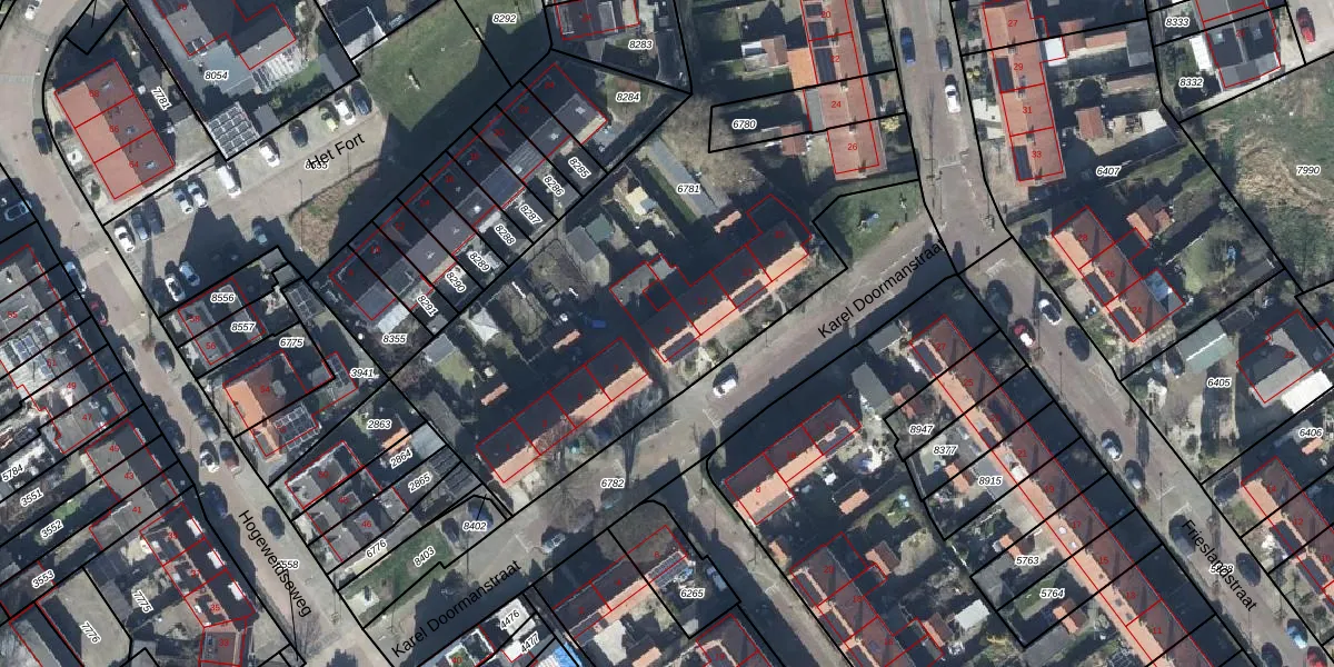 Karel Doormanstraat 9 is gelegen op kadastraal perceel TIE00C6781. Deze kadastrale aanduiding is uniek en wordt gebruikt door het Kadaster om eigendomsrechten en andere zakelijke rechten vast te leggen. Het perceel maakt onderdeel uit van de kadastrale gemeente Tiel.