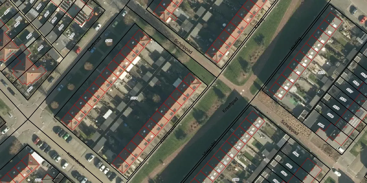 Het perceel waarop Kattedoorn 21 staat heeft een oppervlakte van 3545 m². Dit is een zeer groot perceel. De perceeloppervlakte wordt geregistreerd door het Kadaster. Gedetailleerde informatie over de maten van dit perceel kunt u vinden in het rapport Kadastrale kaart met maatvoering van Kattedoorn 21.