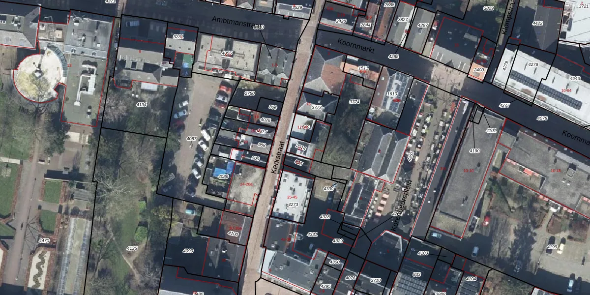 Gebruik de zoekbalk of klik op een perceel voor informatie over de adressen binnen dit perceel.