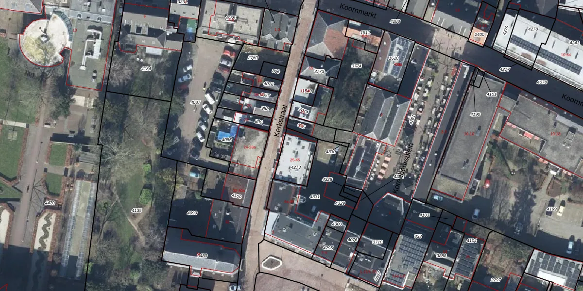 Kerkstraat 27 is gelegen op kadastraal perceel TIE00E4273. Deze kadastrale aanduiding is uniek en wordt gebruikt door het Kadaster om eigendomsrechten en andere zakelijke rechten vast te leggen. Het perceel maakt onderdeel uit van de kadastrale gemeente Tiel.