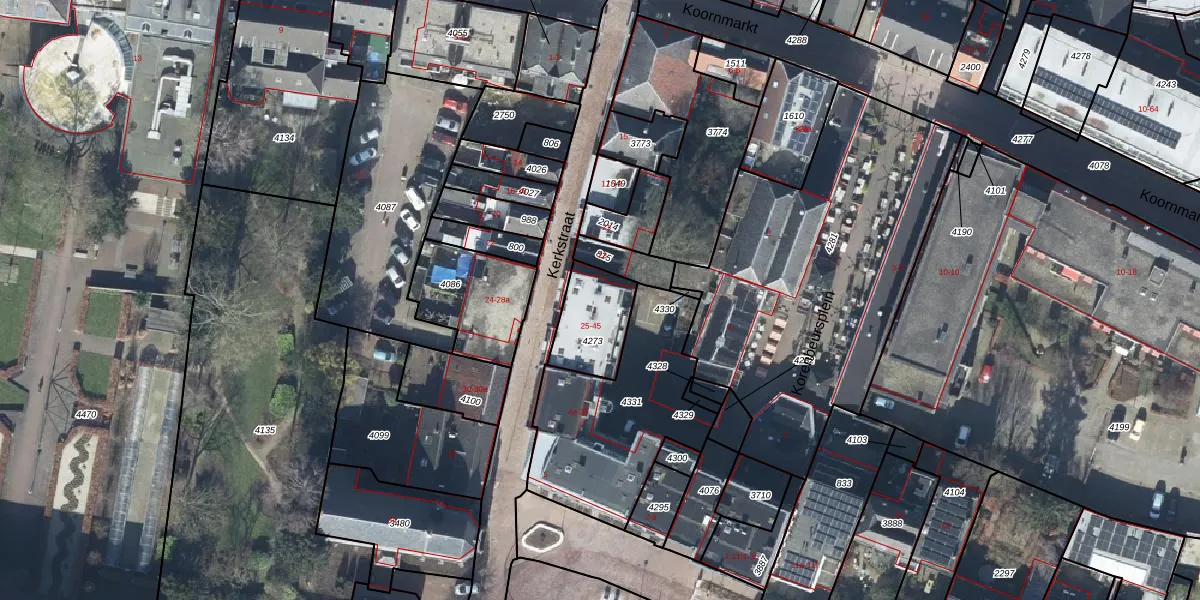 Kerkstraat 33 is gelegen op kadastraal perceel TIE00E4273. Deze kadastrale aanduiding is uniek en wordt gebruikt door het Kadaster om eigendomsrechten en andere zakelijke rechten vast te leggen. Het perceel maakt onderdeel uit van de kadastrale gemeente Tiel.