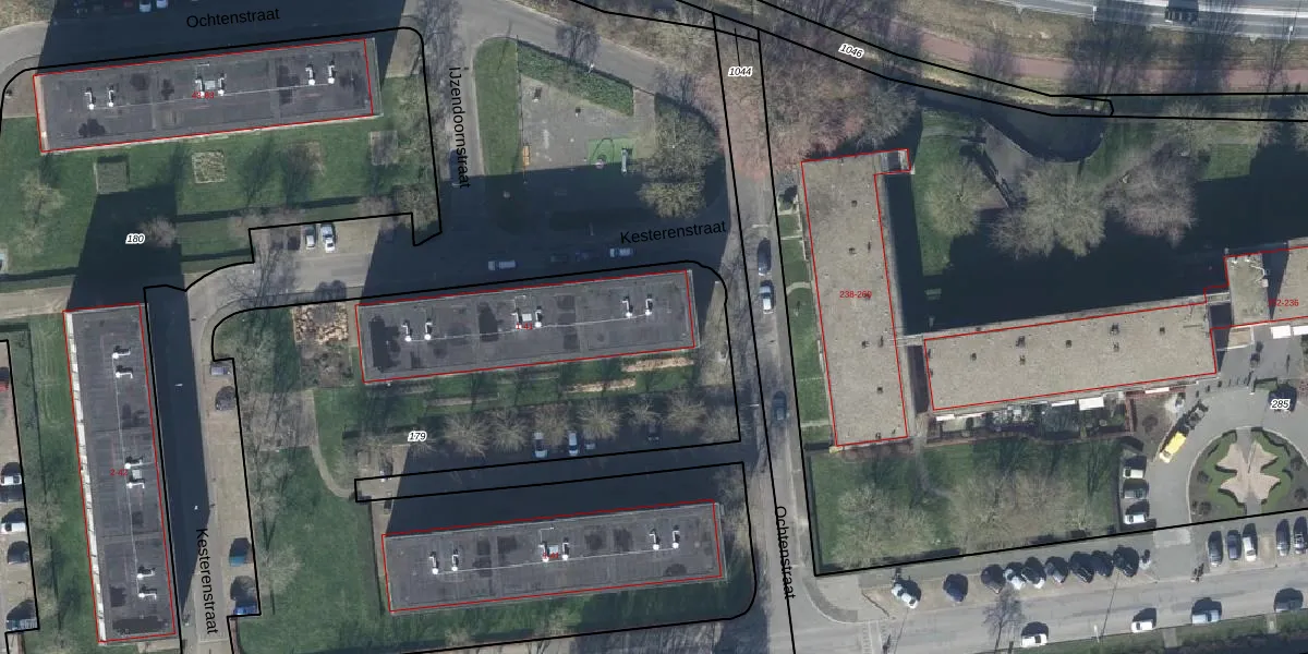 Het perceel waarop Kesterenstraat 9 staat heeft een oppervlakte van 3965 m². Dit is een zeer groot perceel. De perceeloppervlakte wordt geregistreerd door het Kadaster. Gedetailleerde informatie over de maten van dit perceel kunt u vinden in het rapport Kadastrale kaart met maatvoering van Kesterenstraat 9.