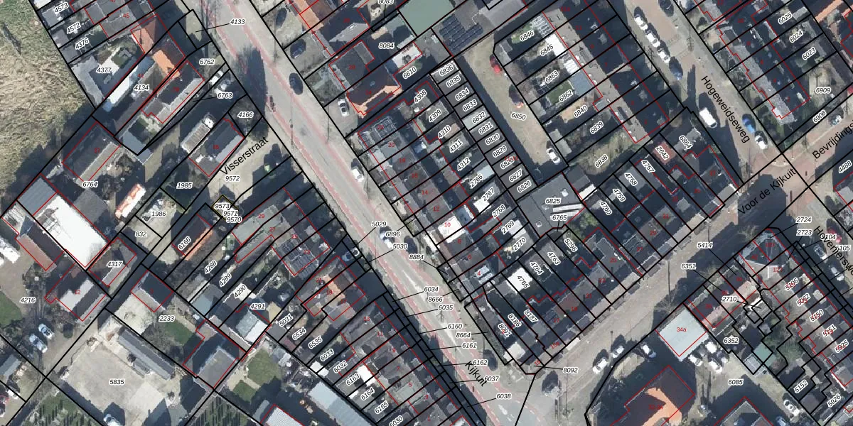 Gebruik de zoekbalk of klik op een perceel voor informatie over de adressen binnen dit perceel.