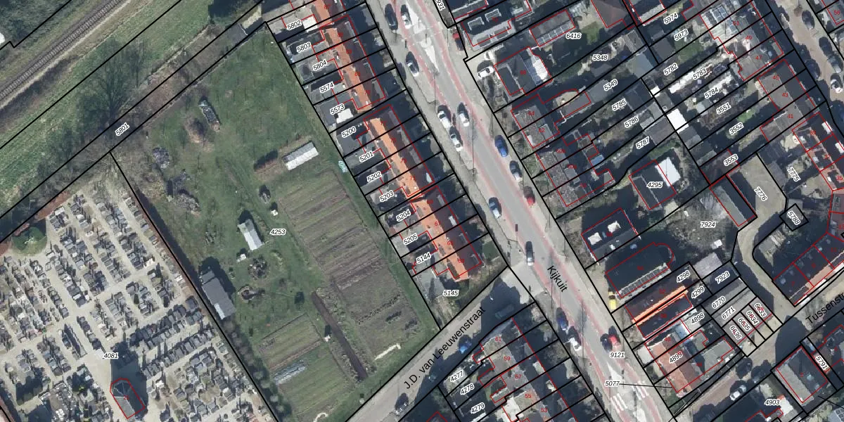 Gebruik de zoekbalk of klik op een perceel voor informatie over de adressen binnen dit perceel.