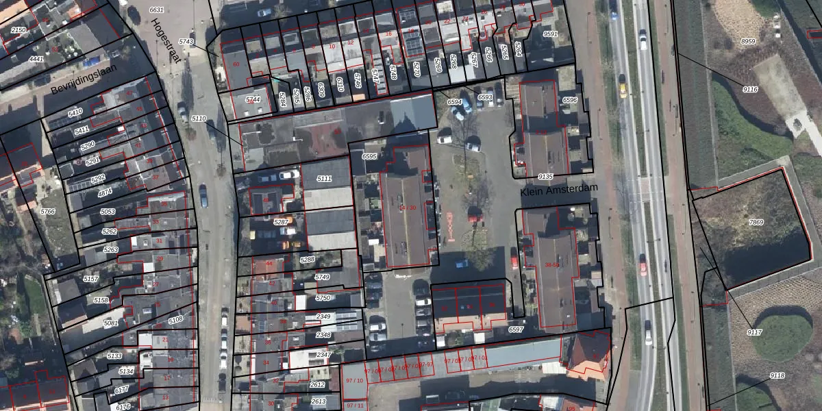Het perceel waarop Klein Amsterdam 22 staat heeft een oppervlakte van 630 m². Dit is een groot perceel. De perceeloppervlakte wordt geregistreerd door het Kadaster. Gedetailleerde informatie over de maten van dit perceel kunt u vinden in het rapport Kadastrale kaart met maatvoering van Klein Amsterdam 22.