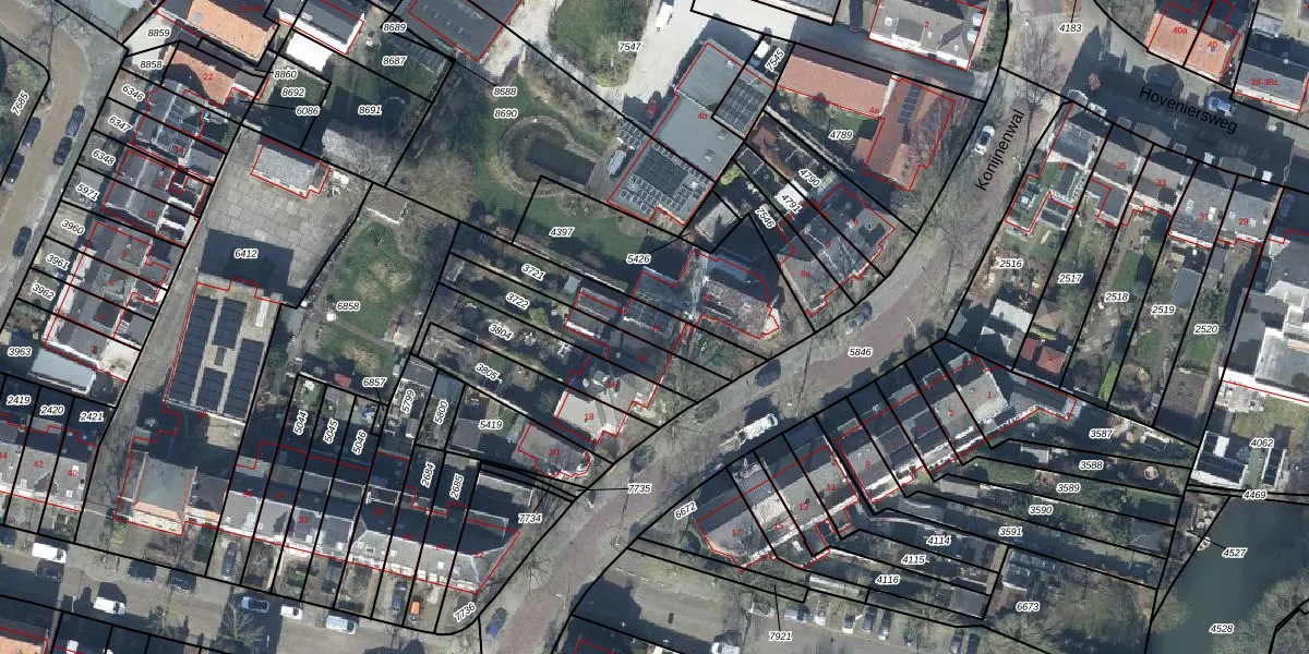 Gebruik de zoekbalk of klik op een perceel voor informatie over de adressen binnen dit perceel.
