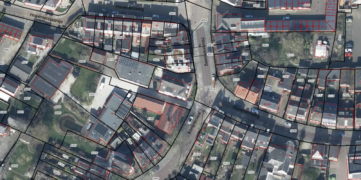 Het perceel waarop Konijnenwal 2 staat heeft een oppervlakte van 877 m². Dit is een groot perceel. De perceeloppervlakte wordt geregistreerd door het Kadaster. Gedetailleerde informatie over de maten van dit perceel kunt u vinden in het rapport Kadastrale kaart met maatvoering van Konijnenwal 2.