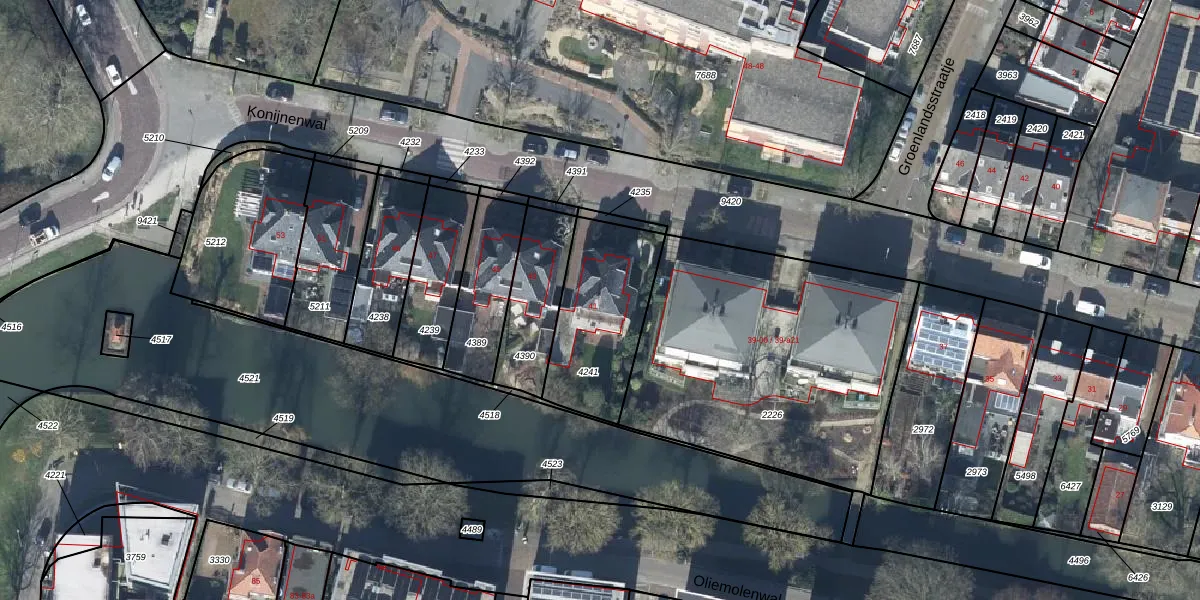Gebruik de zoekbalk of klik op een perceel voor informatie over de adressen binnen dit perceel.