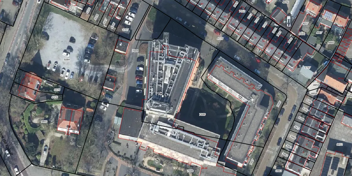 Het perceel waarop Konijnenwal 48-106 staat heeft een oppervlakte van 3161 m². Dit is een zeer groot perceel. De perceeloppervlakte wordt geregistreerd door het Kadaster. Gedetailleerde informatie over de maten van dit perceel kunt u vinden in het rapport Kadastrale kaart met maatvoering van Konijnenwal 48-106.
