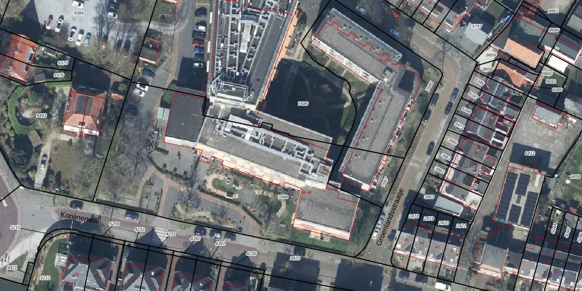 Het perceel waarop Konijnenwal 48-227 staat heeft een oppervlakte van 3398 m². Dit is een zeer groot perceel. De perceeloppervlakte wordt geregistreerd door het Kadaster. Gedetailleerde informatie over de maten van dit perceel kunt u vinden in het rapport Kadastrale kaart met maatvoering van Konijnenwal 48-227.