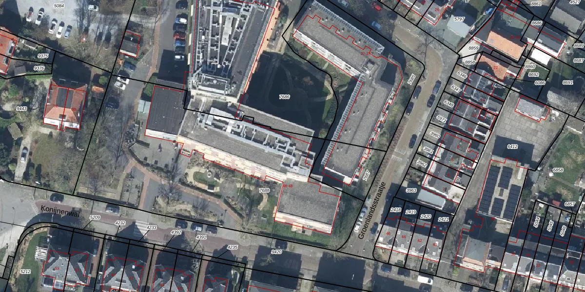Het perceel waarop Konijnenwal 48-228 staat heeft een oppervlakte van 3398 m². Dit is een zeer groot perceel. De perceeloppervlakte wordt geregistreerd door het Kadaster. Gedetailleerde informatie over de maten van dit perceel kunt u vinden in het rapport Kadastrale kaart met maatvoering van Konijnenwal 48-228.