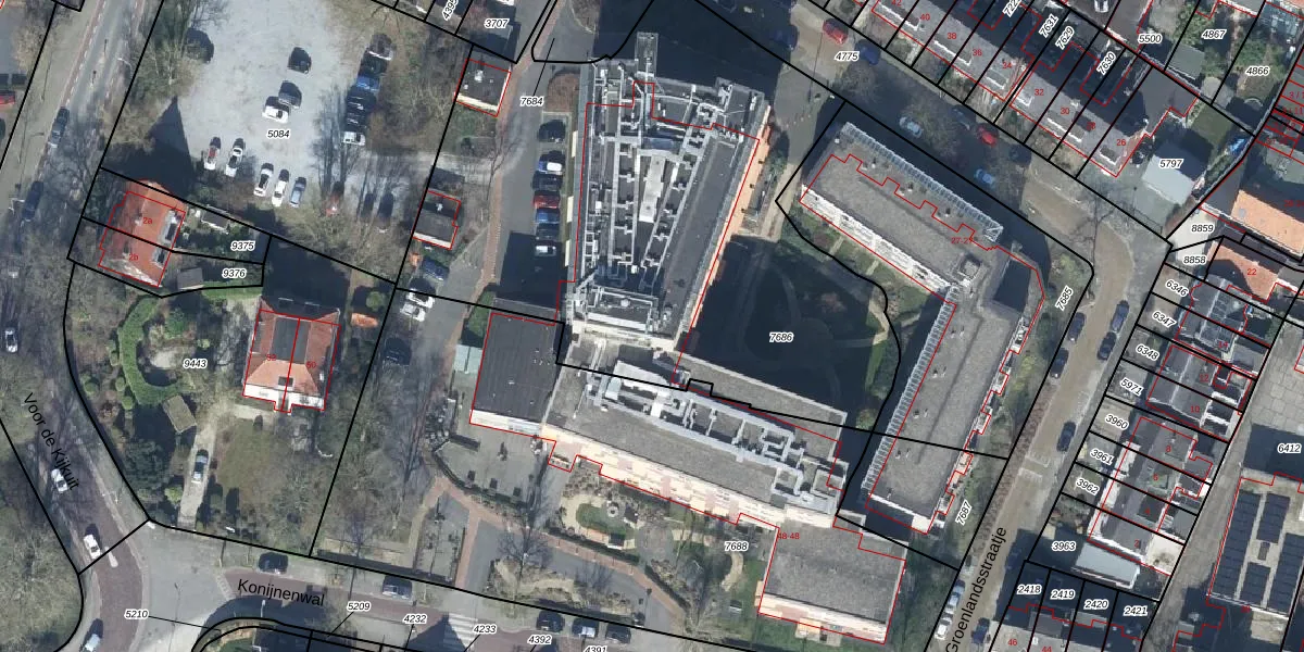 Het perceel waarop Konijnenwal 48-202 staat heeft een oppervlakte van 3161 m². Dit is een zeer groot perceel. De perceeloppervlakte wordt geregistreerd door het Kadaster. Gedetailleerde informatie over de maten van dit perceel kunt u vinden in het rapport Kadastrale kaart met maatvoering van Konijnenwal 48-202.