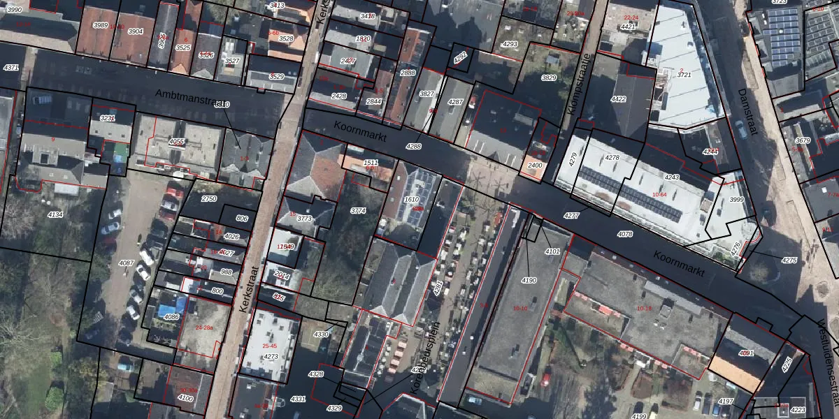 Het perceel waarop Koornmarkt 8-12 staat heeft een oppervlakte van 210 m². Dit is een middelgroot perceel. De perceeloppervlakte wordt geregistreerd door het Kadaster. Gedetailleerde informatie over de maten van dit perceel kunt u vinden in het rapport Kadastrale kaart met maatvoering van Koornmarkt 8-12.