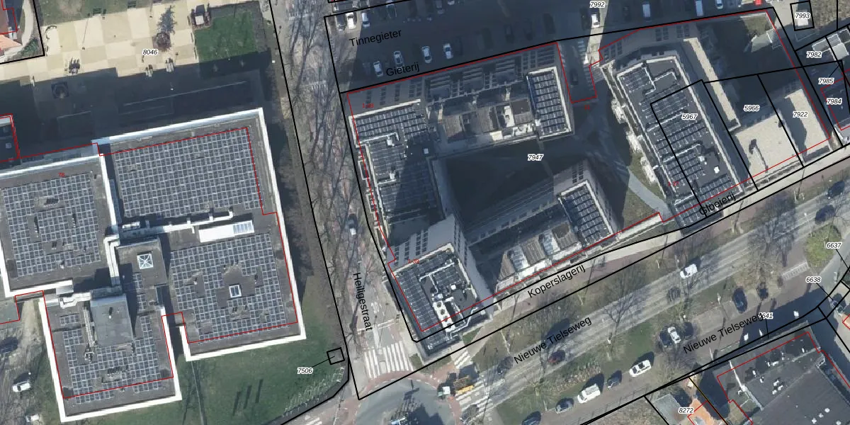 Het perceel waarop Koperslagerij 16 staat heeft een oppervlakte van 4487 m². Dit is een zeer groot perceel. De perceeloppervlakte wordt geregistreerd door het Kadaster. Gedetailleerde informatie over de maten van dit perceel kunt u vinden in het rapport Kadastrale kaart met maatvoering van Koperslagerij 16.