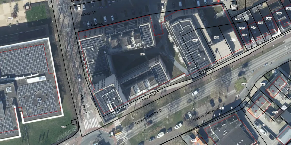 Koperslagerij 21 is gelegen op kadastraal perceel TIE00D7947. Deze kadastrale aanduiding is uniek en wordt gebruikt door het Kadaster om eigendomsrechten en andere zakelijke rechten vast te leggen. Het perceel maakt onderdeel uit van de kadastrale gemeente Tiel.