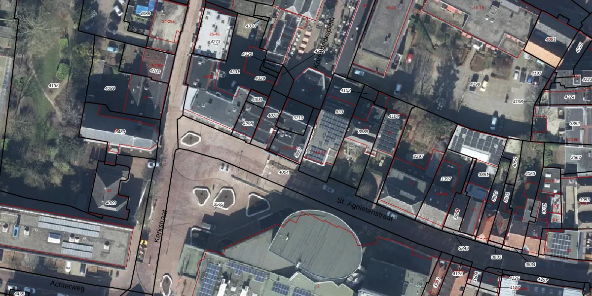 Korenbeursplein 1-11 is gelegen op kadastraal perceel TIE00E3887. Deze kadastrale aanduiding is uniek en wordt gebruikt door het Kadaster om eigendomsrechten en andere zakelijke rechten vast te leggen. Het perceel maakt onderdeel uit van de kadastrale gemeente Tiel.