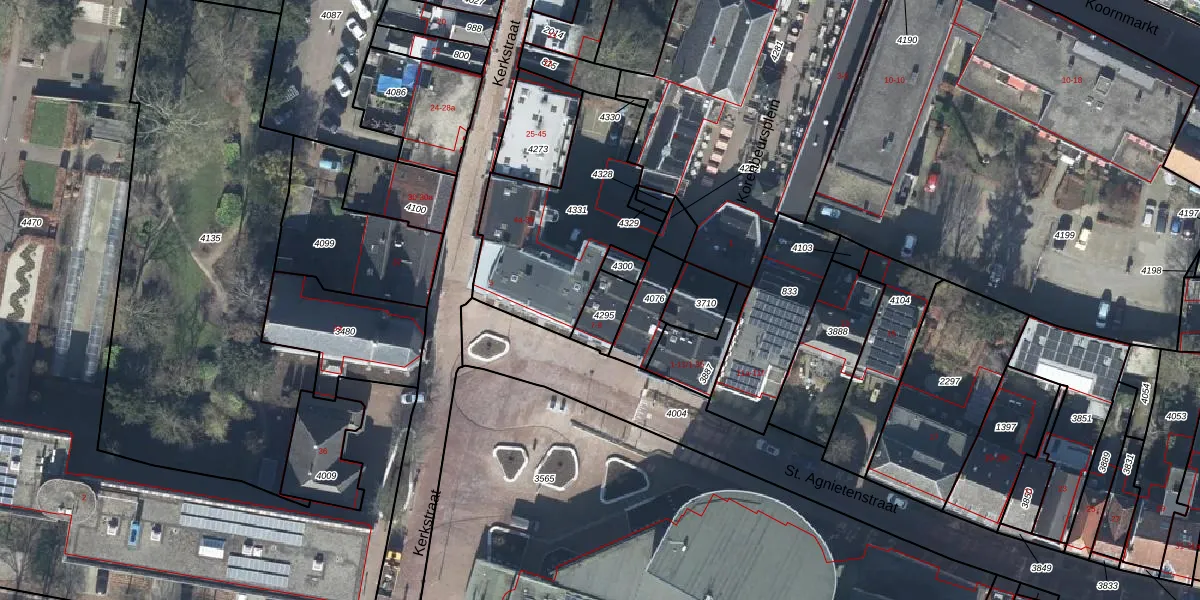 Korenbeursplein 1-23 is gelegen op kadastraal perceel TIE00E4295. Deze kadastrale aanduiding is uniek en wordt gebruikt door het Kadaster om eigendomsrechten en andere zakelijke rechten vast te leggen. Het perceel maakt onderdeel uit van de kadastrale gemeente Tiel.