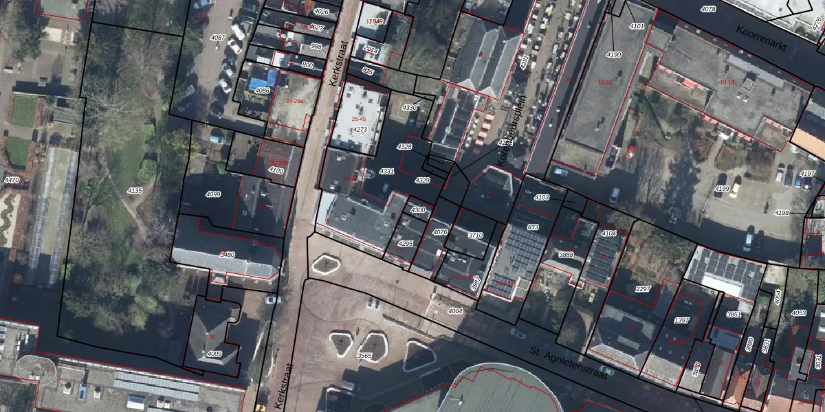 Gebruik de zoekbalk of klik op een perceel voor informatie over de adressen binnen dit perceel.