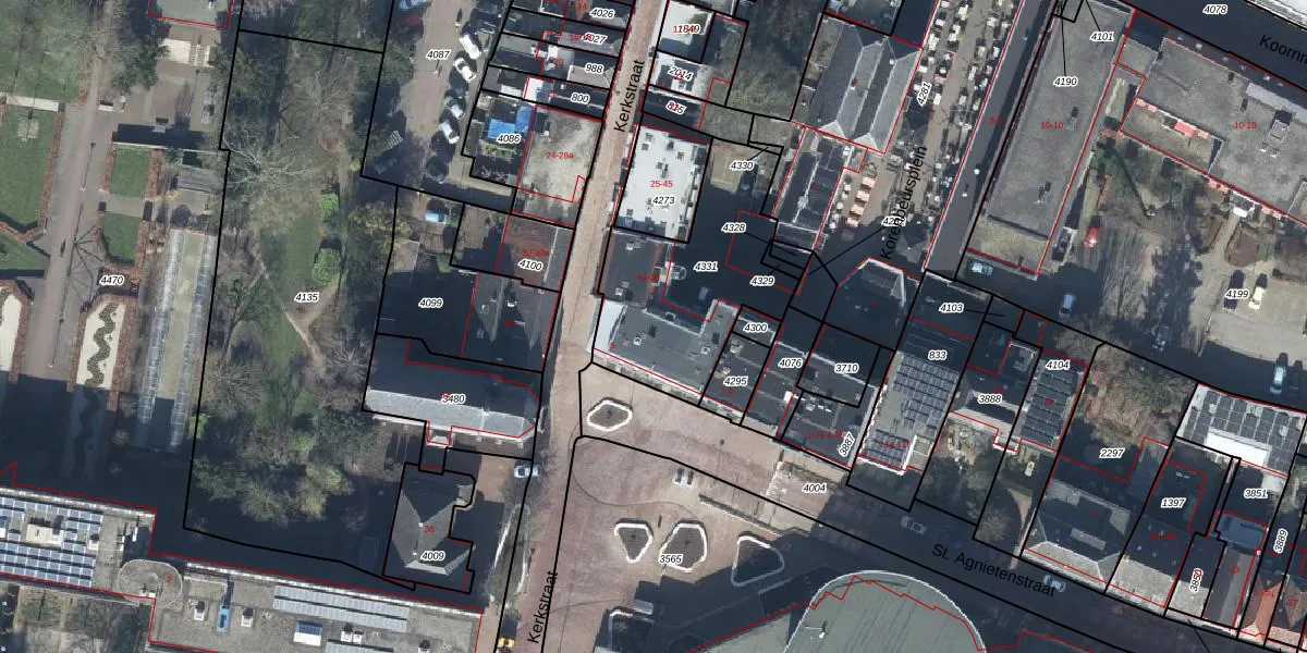 Het perceel waarop Korenbeursplein 22 staat heeft een oppervlakte van 706 m². Dit is een groot perceel. De perceeloppervlakte wordt geregistreerd door het Kadaster. Gedetailleerde informatie over de maten van dit perceel kunt u vinden in het rapport Kadastrale kaart met maatvoering van Korenbeursplein 22.