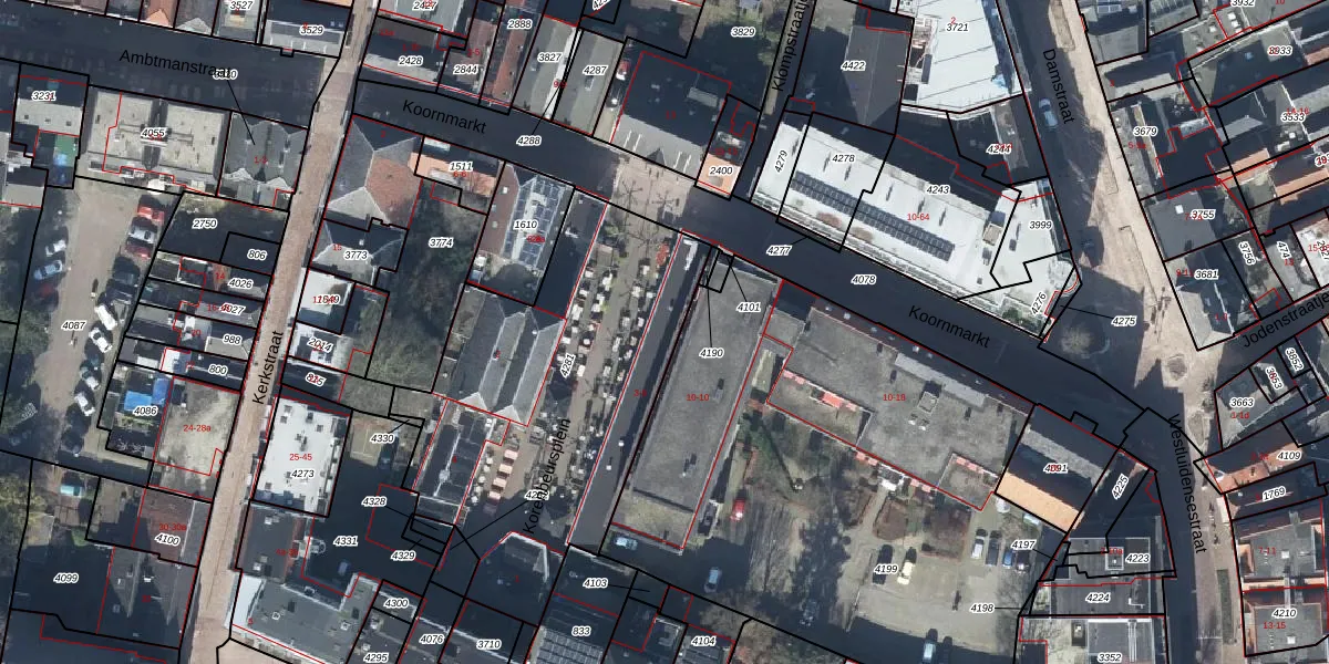 Het perceel waarop Korenbeursplein 5 staat heeft een oppervlakte van 1567 m². Dit is een zeer groot perceel. De perceeloppervlakte wordt geregistreerd door het Kadaster. Gedetailleerde informatie over de maten van dit perceel kunt u vinden in het rapport Kadastrale kaart met maatvoering van Korenbeursplein 5.