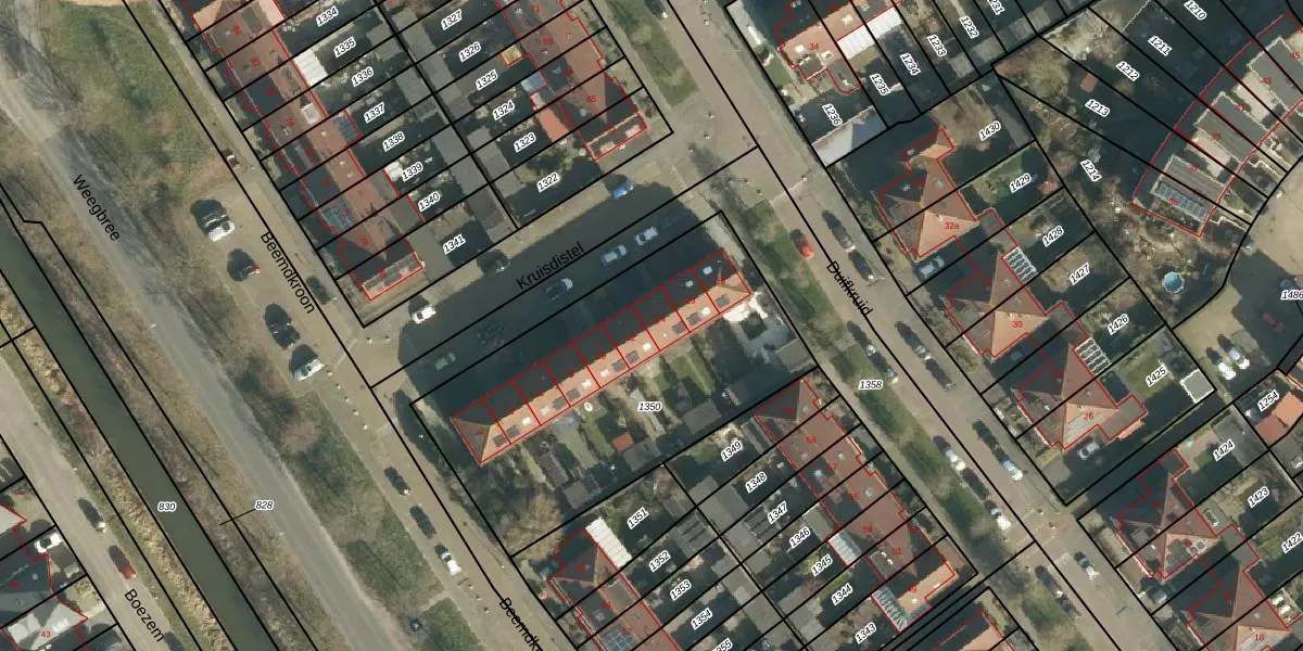 Het perceel waarop Kruisdistel 14 staat heeft een oppervlakte van 1572 m². Dit is een zeer groot perceel. De perceeloppervlakte wordt geregistreerd door het Kadaster. Gedetailleerde informatie over de maten van dit perceel kunt u vinden in het rapport Kadastrale kaart met maatvoering van Kruisdistel 14.