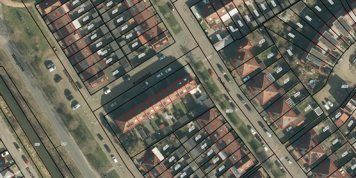 Het perceel waarop Kruisdistel 16 staat heeft een oppervlakte van 1572 m². Dit is een zeer groot perceel. De perceeloppervlakte wordt geregistreerd door het Kadaster. Gedetailleerde informatie over de maten van dit perceel kunt u vinden in het rapport Kadastrale kaart met maatvoering van Kruisdistel 16.