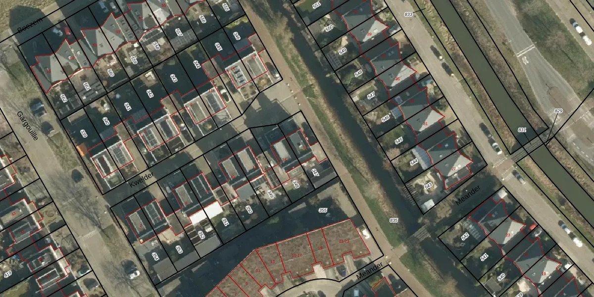 Gebruik de zoekbalk of klik op een perceel voor informatie over de adressen binnen dit perceel.