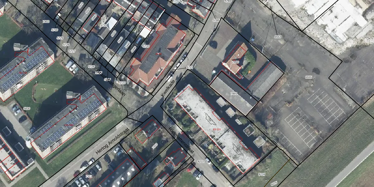 Kwelkade 63 is gelegen op kadastraal perceel TIE00D5977. Deze kadastrale aanduiding is uniek en wordt gebruikt door het Kadaster om eigendomsrechten en andere zakelijke rechten vast te leggen. Het perceel maakt onderdeel uit van de kadastrale gemeente Tiel.