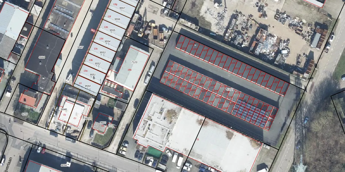 Het adres ligt op het perceel TIE00-C-5332, dat zich in de kadastrale gemeente Tiel bevindt. Het perceel is met 3215 m² relatief groot. Het gemiddelde ligt in de kadastrale gemeente Tiel op 1546,87 m². Het grootste perceel in de kadastrale gemeente is 26,3 ha. Het kleinste perceel heeft een oppervlakte van 0 m². Op het perceel liggen in totaal 70 adressen. In de Basisregistratie Kadaster (BRK) werden de grenzen van het perceel geregistreerd op 12-02-2010.