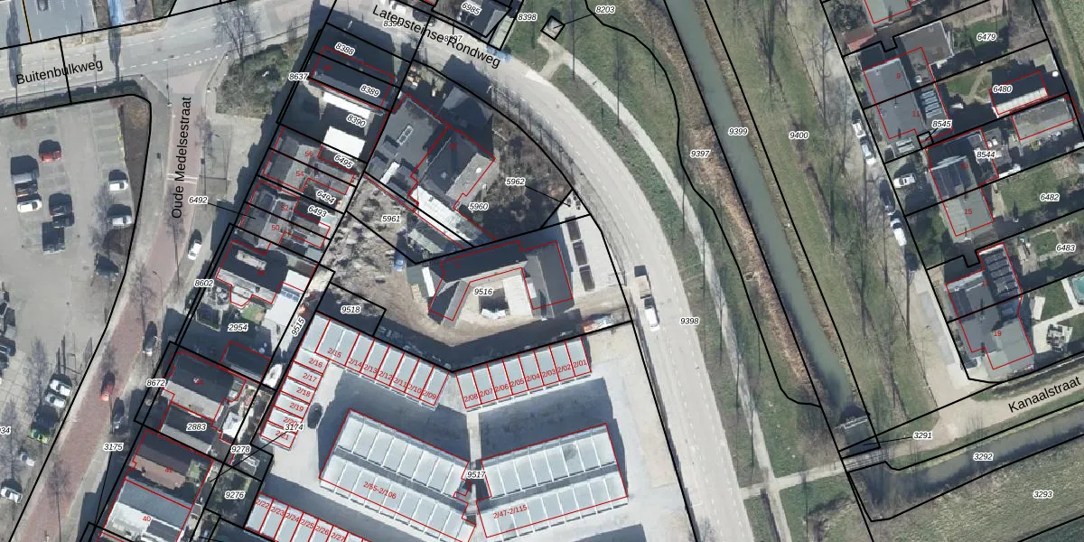 Latensteinse Rondweg 2 is gelegen op kadastraal perceel TIE00C9516. Deze kadastrale aanduiding is uniek en wordt gebruikt door het Kadaster om eigendomsrechten en andere zakelijke rechten vast te leggen. Het perceel maakt onderdeel uit van de kadastrale gemeente Tiel.