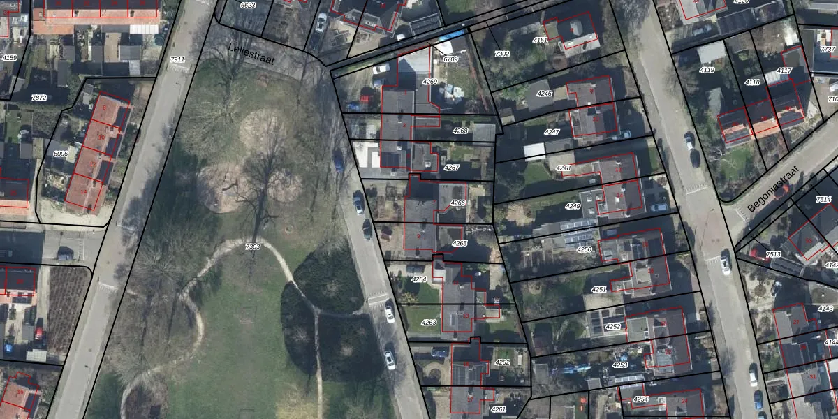 Leliestraat 7 is gelegen op kadastraal perceel TIE00D4266. Deze kadastrale aanduiding is uniek en wordt gebruikt door het Kadaster om eigendomsrechten en andere zakelijke rechten vast te leggen. Het perceel maakt onderdeel uit van de kadastrale gemeente Tiel.