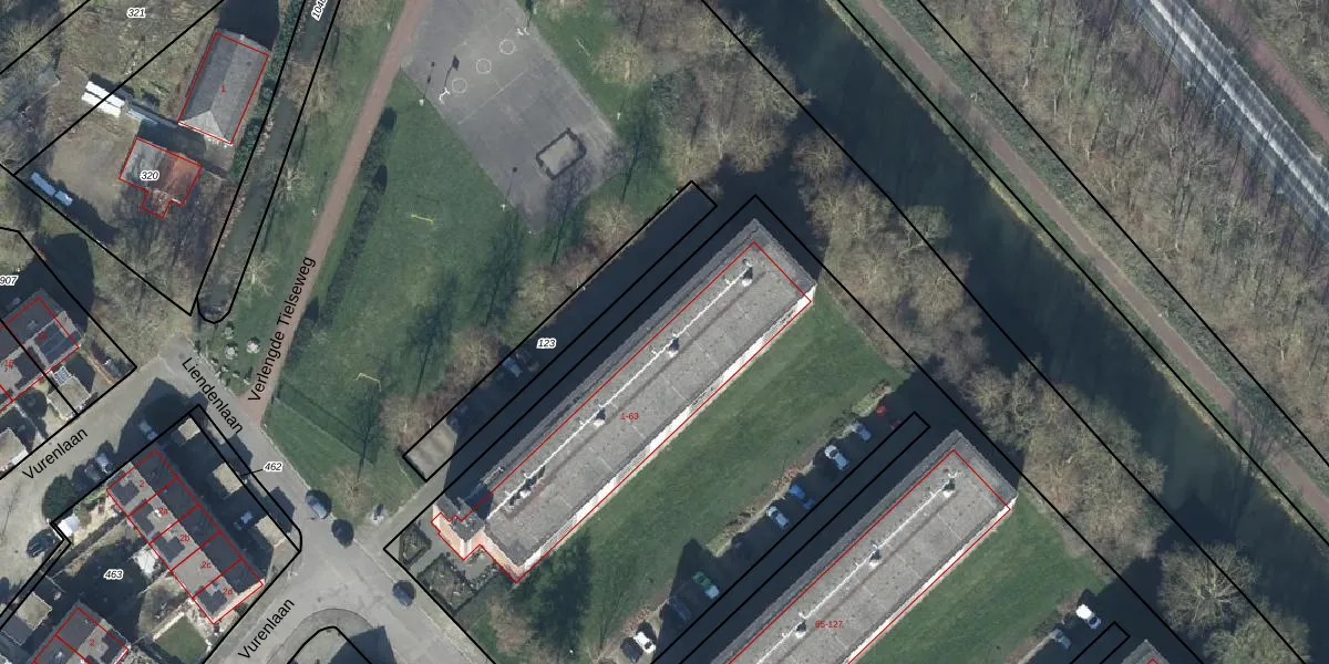 Het perceel waarop Liendenlaan 1-14 staat heeft een oppervlakte van 1,8 ha. Dit is een zeer groot perceel. De perceeloppervlakte wordt geregistreerd door het Kadaster. Gedetailleerde informatie over de maten van dit perceel kunt u vinden in het rapport Kadastrale kaart met maatvoering van Liendenlaan 1-14.