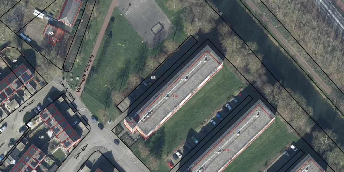 Het perceel waarop Liendenlaan 1-11 staat heeft een oppervlakte van 1,8 ha. Dit is een zeer groot perceel. De perceeloppervlakte wordt geregistreerd door het Kadaster. Gedetailleerde informatie over de maten van dit perceel kunt u vinden in het rapport Kadastrale kaart met maatvoering van Liendenlaan 1-11.