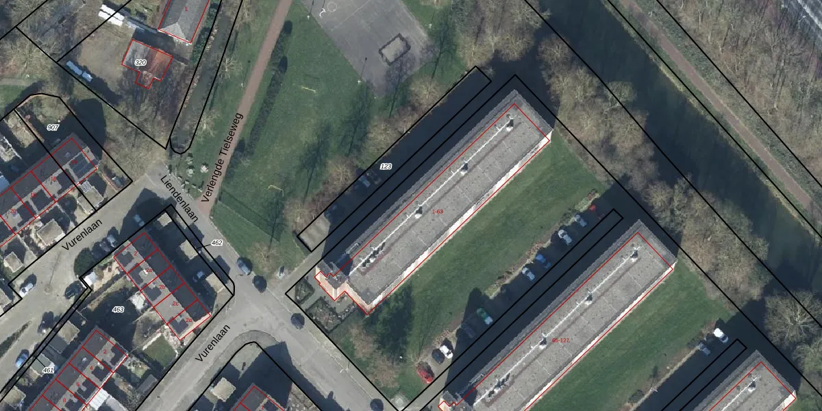 Het perceel waarop Liendenlaan 1-09 staat heeft een oppervlakte van 1,8 ha. Dit is een zeer groot perceel. De perceeloppervlakte wordt geregistreerd door het Kadaster. Gedetailleerde informatie over de maten van dit perceel kunt u vinden in het rapport Kadastrale kaart met maatvoering van Liendenlaan 1-09.