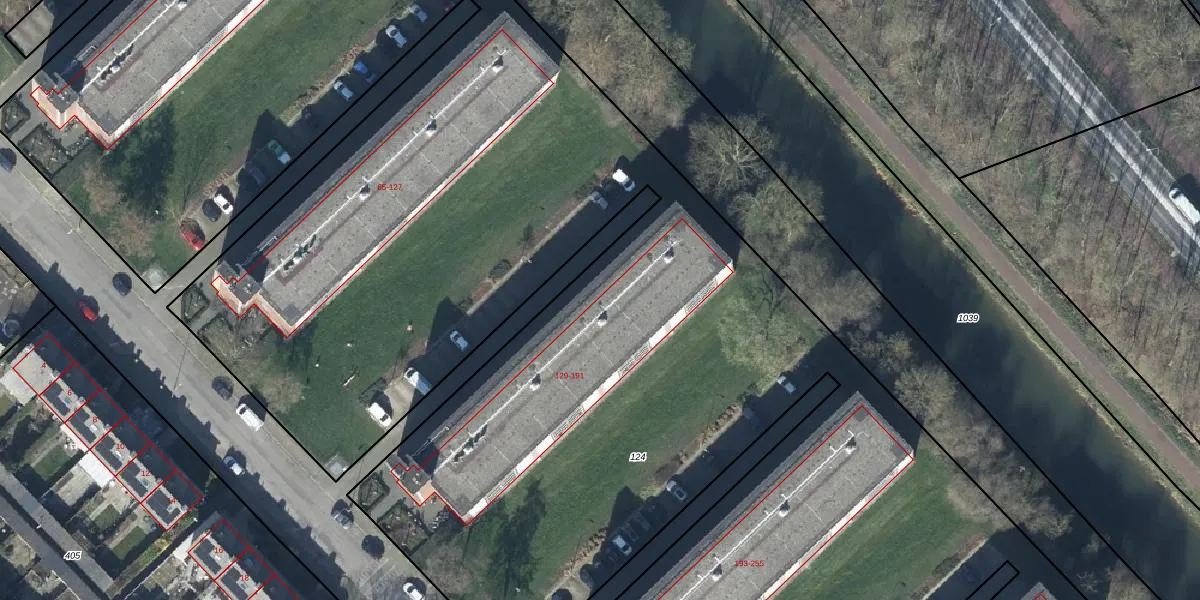Het perceel waarop het adres ligt is TIE00-M-124. De afkorting 'TIE00' staat voor kadastrale gemeente Tiel. Het perceel is met 1,8 ha relatief groot. Het gemiddelde ligt in de kadastrale gemeente Tiel op 1550,27 m². Het kleinste perceel in de kadastrale gemeente is 0 m² groot. De grootste perceeloppervlakte is 26,3 ha. Er zijn 311 adressen aanwezig op het perceel. In de Basisregistratie Kadaster (BRK) werden de grenzen van het perceel geregistreerd op 06-04-2004.