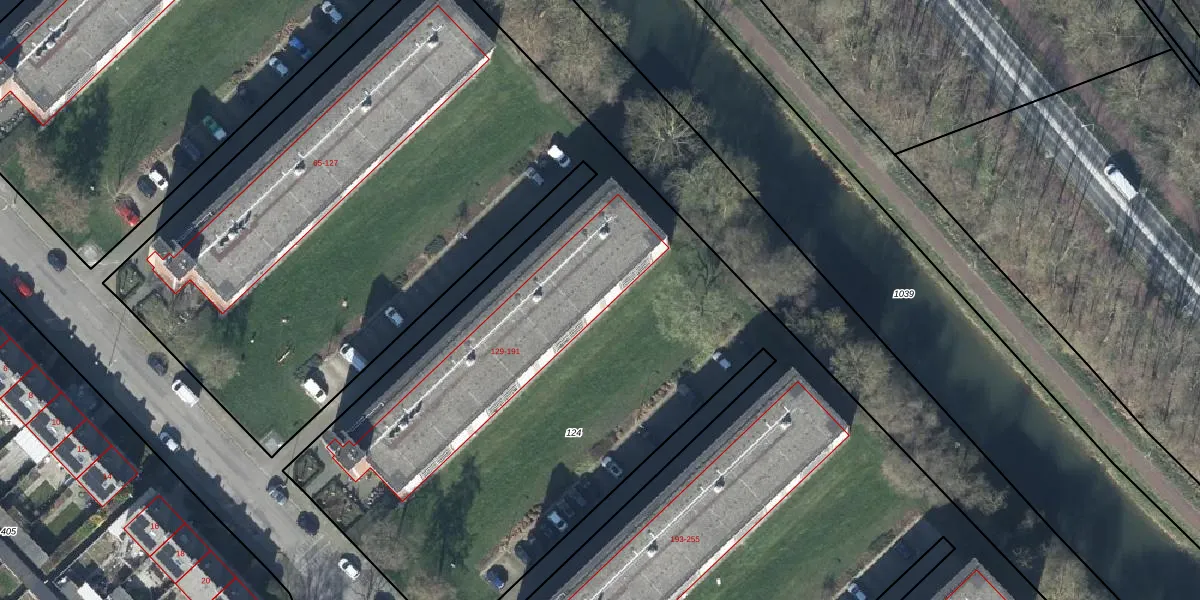 Het perceel waarop het adres ligt is TIE00-M-124. De afkorting 'TIE00' staat voor kadastrale gemeente Tiel. Het perceel is met 1,8 ha relatief groot. Het gemiddelde ligt in de kadastrale gemeente Tiel op 1550,27 m². Het kleinste perceel in de kadastrale gemeente is 0 m² groot. De grootste perceeloppervlakte is 26,3 ha. Op het perceel liggen in totaal 311 adressen. De huidige grenzen van het perceel zijn digitaal in de Basisregistratie Kadaster (BRK) geregistreerd op 06-04-2004.
