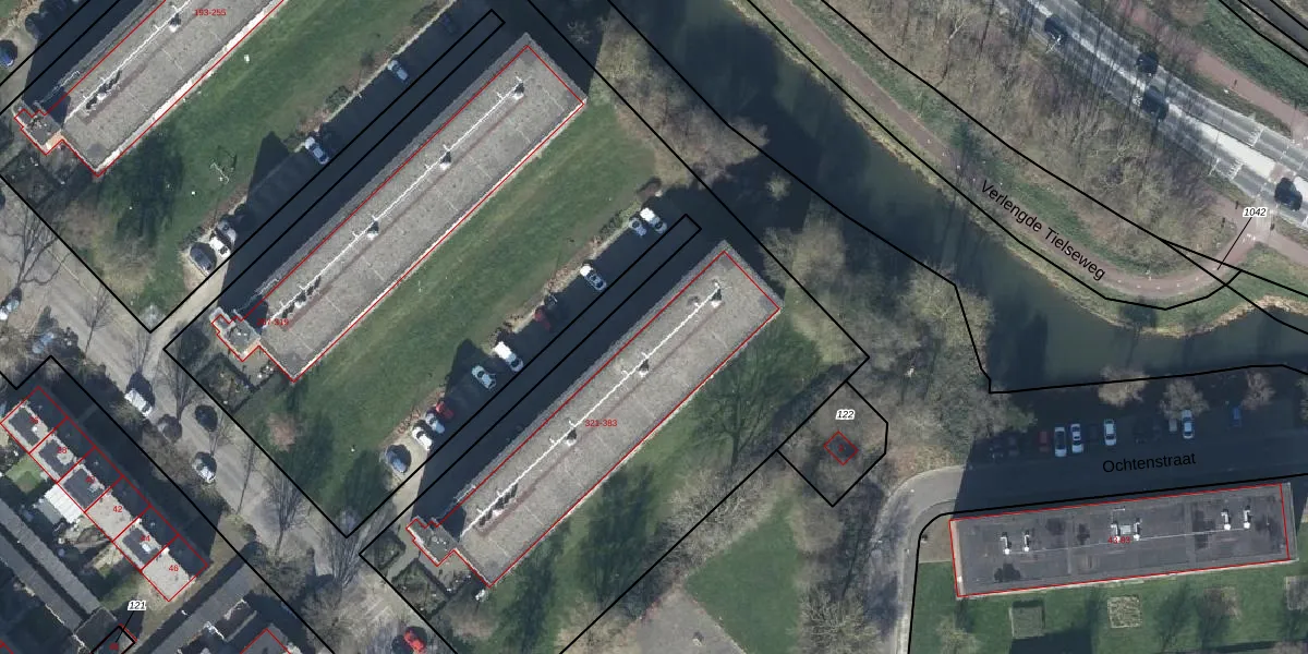 Het perceel waarop het adres ligt is TIE00-M-124. De afkorting 'TIE00' staat voor kadastrale gemeente Tiel. Het perceel is met 1,8 ha relatief groot. Het gemiddelde ligt in de kadastrale gemeente Tiel op 1550,27 m². De grootste perceeloppervlakte in de kadastrale gemeente is 26,3 ha. De kleinste oppervlakte bedraagt 0 m². Op het perceel liggen in totaal 311 adressen. De huidige grenzen van het perceel zijn digitaal in de Basisregistratie Kadaster (BRK) geregistreerd op 06-04-2004.
