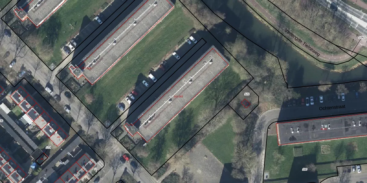 Het perceel waarop het adres ligt is TIE00-M-124. De afkorting 'TIE00' staat voor kadastrale gemeente Tiel. Het perceel is met 1,8 ha relatief groot. Het gemiddelde ligt in de kadastrale gemeente Tiel op 1550,27 m². Het grootste perceel in de kadastrale gemeente is 26,3 ha. Het kleinste perceel heeft een oppervlakte van 0 m². Op het perceel liggen in totaal 311 adressen. In de Basisregistratie Kadaster (BRK) werden de grenzen van het perceel geregistreerd op 06-04-2004.
