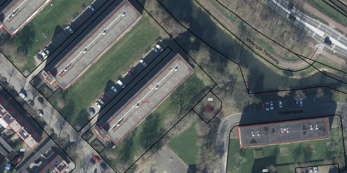 Het perceel waarop het adres ligt is TIE00-M-124. De afkorting 'TIE00' staat voor kadastrale gemeente Tiel. Het perceel is met 1,8 ha relatief groot. Het gemiddelde ligt in de kadastrale gemeente Tiel op 1550,27 m². Het grootste perceel in de kadastrale gemeente is 26,3 ha. Het kleinste perceel heeft een oppervlakte van 0 m². Op het perceel zijn 311 adressen aanwezig. De laatste wijziging in het de Basisregistratie Kadaster (BRK) was op 06-04-2004.