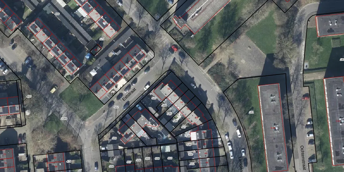 Gebruik de zoekbalk of klik op een perceel voor informatie over de adressen binnen dit perceel.