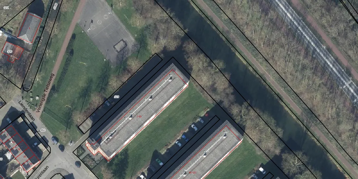 Liendenlaan 63 is gelegen op kadastraal perceel TIE00M124. Deze kadastrale aanduiding is uniek en wordt gebruikt door het Kadaster om eigendomsrechten en andere zakelijke rechten vast te leggen. Het perceel maakt onderdeel uit van de kadastrale gemeente Tiel.