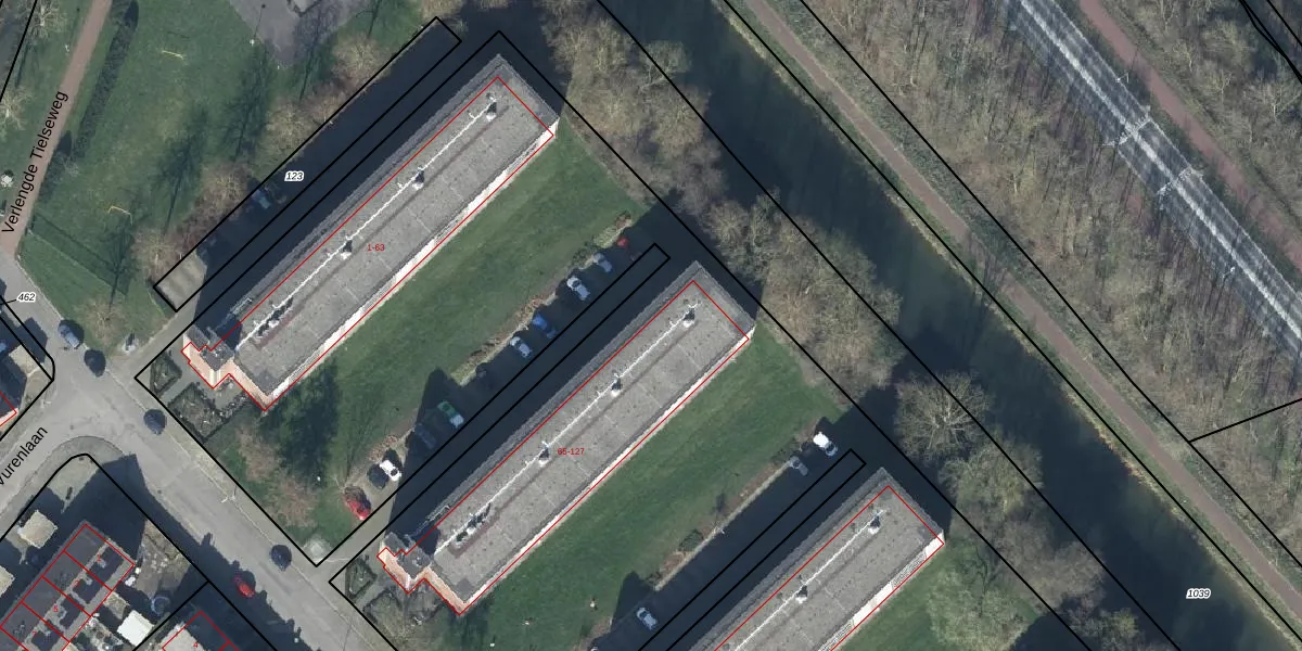 Het perceel waarop het adres ligt is TIE00-M-124. De afkorting 'TIE00' staat voor kadastrale gemeente Tiel. De gemiddelde perceeloppervlakte in de kadastrale gemeente Tiel is 1550,27 m². Dit perceel is met zijn 1,8 ha dus groter dan gemiddeld. Het grootste perceel in de kadastrale gemeente is 26,3 ha. Het kleinste perceel heeft een oppervlakte van 0 m². Er zijn 311 adressen aanwezig op het perceel. De laatste wijziging in het de Basisregistratie Kadaster (BRK) was op 06-04-2004.