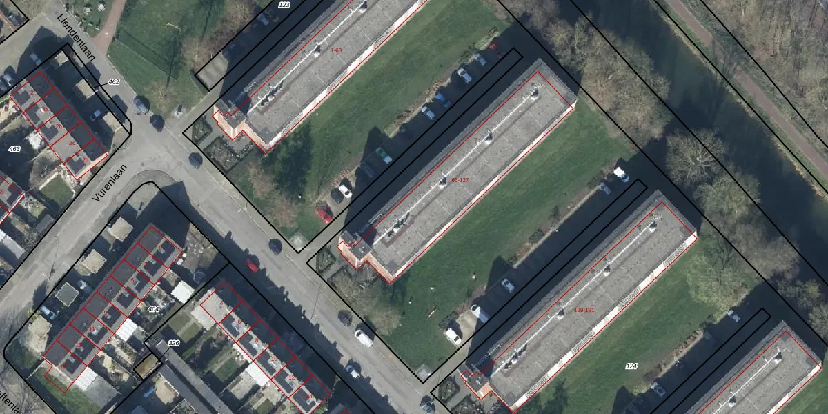 Het perceel waarop Liendenlaan 69 staat heeft een oppervlakte van 1,8 ha. Dit is een zeer groot perceel. De perceeloppervlakte wordt geregistreerd door het Kadaster. Gedetailleerde informatie over de maten van dit perceel kunt u vinden in het rapport Kadastrale kaart met maatvoering van Liendenlaan 69.