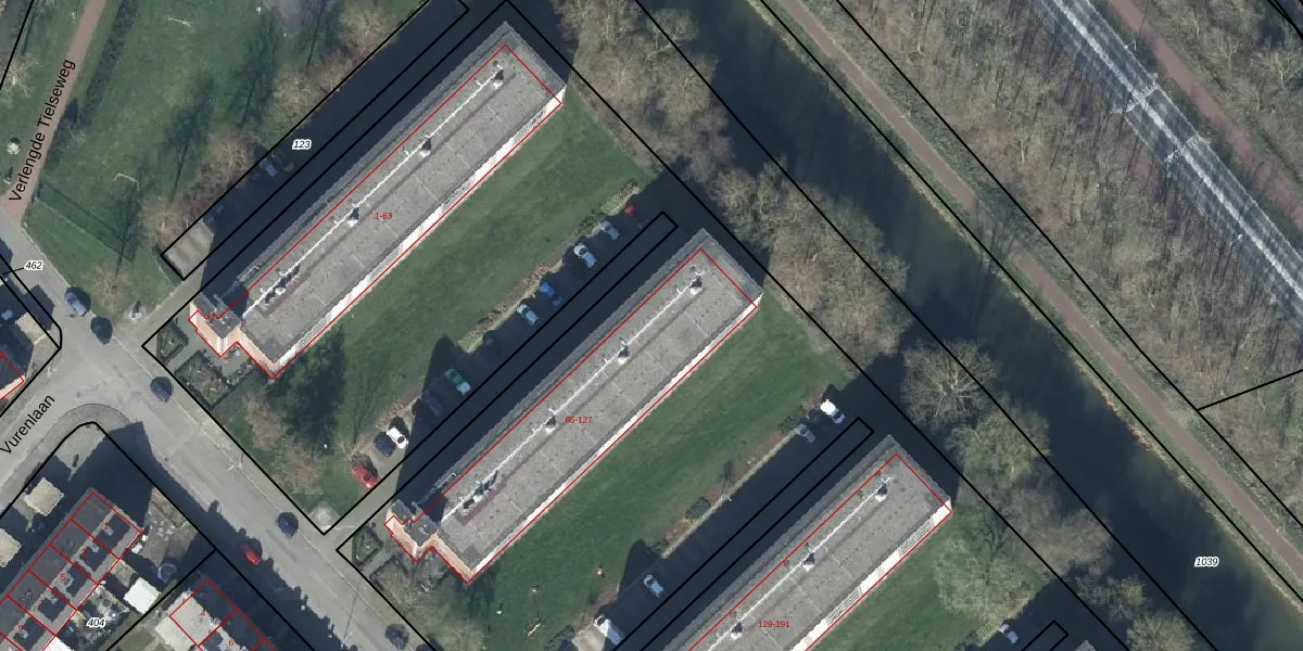 Het perceel waarop het adres ligt is TIE00-M-124. De afkorting 'TIE00' staat voor kadastrale gemeente Tiel. Het perceel is met 1,8 ha relatief groot. Het gemiddelde ligt in de kadastrale gemeente Tiel op 1550,27 m². Het grootste perceel in de kadastrale gemeente is 26,3 ha. Het kleinste perceel heeft een oppervlakte van 0 m². Op het perceel zijn 311 adressen aanwezig. De laatste wijziging in het de Basisregistratie Kadaster (BRK) was op 06-04-2004.