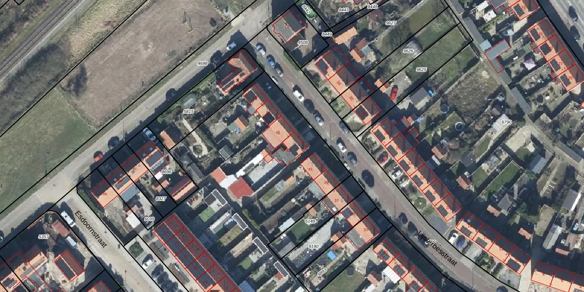 Het perceel waarop Lijsterbesstraat 43 staat heeft een oppervlakte van 6937 m². Dit is een zeer groot perceel. De perceeloppervlakte wordt geregistreerd door het Kadaster. Gedetailleerde informatie over de maten van dit perceel kunt u vinden in het rapport Kadastrale kaart met maatvoering van Lijsterbesstraat 43.