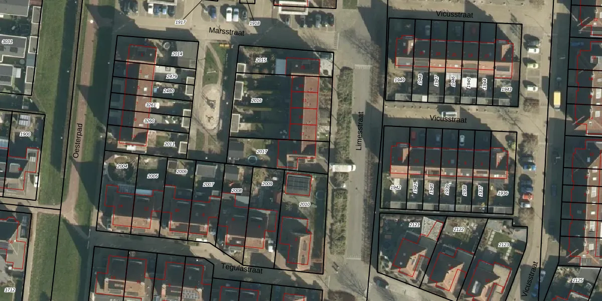 Het perceel waarop Limesstraat 15 staat heeft een oppervlakte van 331 m². Dit is een groot perceel. De perceeloppervlakte wordt geregistreerd door het Kadaster. Gedetailleerde informatie over de maten van dit perceel kunt u vinden in het rapport Kadastrale kaart met maatvoering van Limesstraat 15.